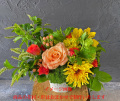 サイズ約H30cm×W32cm×D20cm 掲載している写真は過去にお作りした商品です。 ご注文の際は、写真と同じお花の内容でのオーダーはできません。 花材の内容、形はおまかせで制作いたします。 ※ご注文のタイミングによっては、お届け希望日分の仕入れが終了している場合がございます。 その場合はイメージ通りの色合いでお作り出来ない可能性がある為、事前にメールまたはお電話にてご連絡させていただきます。 何卒ご理解の程よろしくお願い申し上げます。 ナチュラルな雰囲気のブリキポットに黄色・オレンジ系のお花とグリーンをお入れしました。 ご自宅やお店のカウンター、デスクなどに置くのにちょうどいいサイズ感です。 記念日やご自宅のインテリアにおすすめのアレンジメントです。 ※写真はイメージです。季節、仕入れ状況によりお花の内容や形、雰囲気が変わる場合がございます。