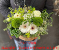 【お花おまかせ】ボウルバスケットアレンジメント《白・グリーン系》 白・グリーン系でまとめた、清楚で上品なアレンジメントです。 老若男女問わず喜ばれる落ち着いた雰囲気で、優しくその場を包んでくれます。 丸みのあるナチュラルなバスケットはお部屋にもよくなじみます。 清楚で上品なカラーリングは誕生日、記念日、送別などのさまざまなお祝いのシーンにオススメです。 高さがないのでダイニングテーブルに置いても視線をさえぎりません。 プロのフローリストが、入荷した新鮮な花材で制作いたします。 商品画像のサイズ 約H22㎝×D30㎝×W34㎝ *使用花材よりサイズは異なります。 *掲載している写真は過去にお作りした商品です。*ご注文の際は、写真と同じ内容でのオーダーはできません。*季節、入荷状況によりお花の内容や大きさは変わりますことをご了承下さい。 *白・グリーン系の色合いで、花材の内容はおまかせで制作いたします。 *ご注文のタイミングによっては、お届け希望日分の仕入れが終了している場合がございます。 その場合はイメージ通りの色合いでお作り出来ない可能性がある為、事前にメールまたはお電話にてご連絡させていただきます。 《ご案内》 ・備考欄に具体的なご用途(お誕生日・開店祝…など)をご記載下さい。 ・お届け先様にお渡しするお届け伝票には、金額が記載されることはございませんのでご安心下さい。 *手提げ袋は有料(1枚10円+税)となります。必要なお客様は、ご注文の際に備考欄に「手提げ袋有」とご記載ください。ご注文確認後にこちらから別途連絡し、課金修正させていただきます。 *ご注文確認後に、当店からメールまたはお電話にてご注文主様へご連絡させていただいております。 予めご了承下さい。