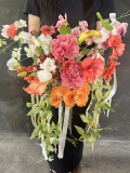 【重要】 ※画像はイメージです。完全オーダーメイドのため、イメージ画像は価格帯や形、雰囲気の参考にしてください。 ※造花ブーケは、お客様と打ち合わせし、ご希望を出来る限り取り入れてデザインいたします。 ※打ち合わせ後、出来上がりまでは【10日間】ほど頂いております。 ※式場へお届けする場合は、挙式前日までのお届けの可能性もありますので、式場にお届け日のご相談をお願いいたします。 ブライダルでご利用の場合はブートニアも付きます。 生花と見間違えるほど美しい高品質のアーティフィシャルフラワー(造花)を使用しています。 大切なウェディングシーンの他、ディスプレイや記念日にもご利用ください。 【イメージ画像】 抱えて持つようなスタイルのブーケです。 垂れ下がるような流れのあるデザインで、遠目からでもゴージャスです。 【商品購入、配送までの流れ】 ①プルダウンから打ち合わせ方法をご選択いただき、「カートに入れる」ボタンからご注文してください。 ※実際にご使用になる日にちを備考欄にご記載お願いします。 ②打ち合わせ メールかご来店で打ち合わせを行います。参考画像があればスムーズです。(複数枚可) ご予算、色合い、形、サイズ感など打ち合わせを行います。 ※お届け先が式場の場合は、事前にお届け日を式場にご確認ください。 ③確定 金額確定後弊社で決済処理を行います。 〈金額に関する注意点〉 オーダーメイド商品のため、打ち合わせ後に金額を決定いたします。そのため記載されている商品金額(ご注文時の金額)と実際にお支払いいただく金額は異なる場合があります。 ご注文時の決済は、まだ決済処理が行われていない状態のため、二重決済されませんのでご安心ください。 ④商品の写真送付 商品のお届け前に、完成した商品の写真をメールでお送りいたします。 ⑤配送 10日間ほどで商品をお届けいたします。 ※弊社配達エリア外の場合は、ヤマト便でお届けいたします。 《ご案内》 【置き配について】 ご不在の場合、玄関フードや宅配ボックス等置ける場所がありましたら商品を置かせていただく《置き配》を推奨しております。 備考欄に、「置き配の可否」をご入力ください。